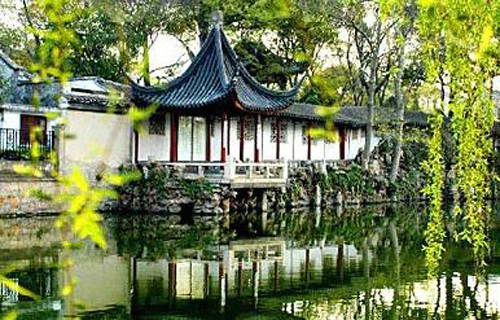 沧浪亭,是现存苏州园林中历史最为悠久的一座,初为北宋诗人苏舜钦所建。取意于《楚辞?渔父》中“沧浪之水清兮,可以濯吾缨;沧浪之水浊兮,可以濯我足”,故名“沧浪”。此园一反高墙深园的常规,园外一波碧水,蜿蜒复廊把这回环的绿意收纳,和园内翠竹摇影、山林野趣的景致融在了一起,相映成趣,美不胜收。自然和谐,构思巧妙、手法得宜的沧浪亭,是宋代园林建筑艺术的佳作,与狮子林、拙政园、留园并列为苏州宋、元、明、清四大园林。
